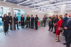Po úvodních slovech, slavnostním stříhání pásky a přípitku proběhla komentovaná prohlídka kanceláří a showroomu.